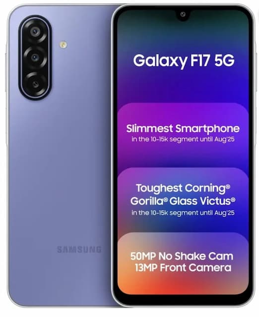 El Samsung Galaxy F17 tiene un precio de Rs 14,499 (aproximadamente $164) para el modelo básico con 4 GB de RAM. La versión de gama alta con 6 GB de RAM cuesta Rs 15,999 (aproximadamente $189). Está disponible en los colores Neo Black y Violet Pop.