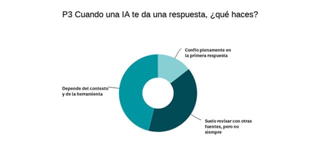 Otro punto para tener en cuenta es que el 40% afirmó compartir con frecuencia o esporádicamente información personal y laboral con la Inteligencia Artificial (el 17% siempre, y el 25% a veces). Además, casi el 60% no lee las políticas de privacidad y solo la mitad de las personas toma una medida concreta para proteger su información.