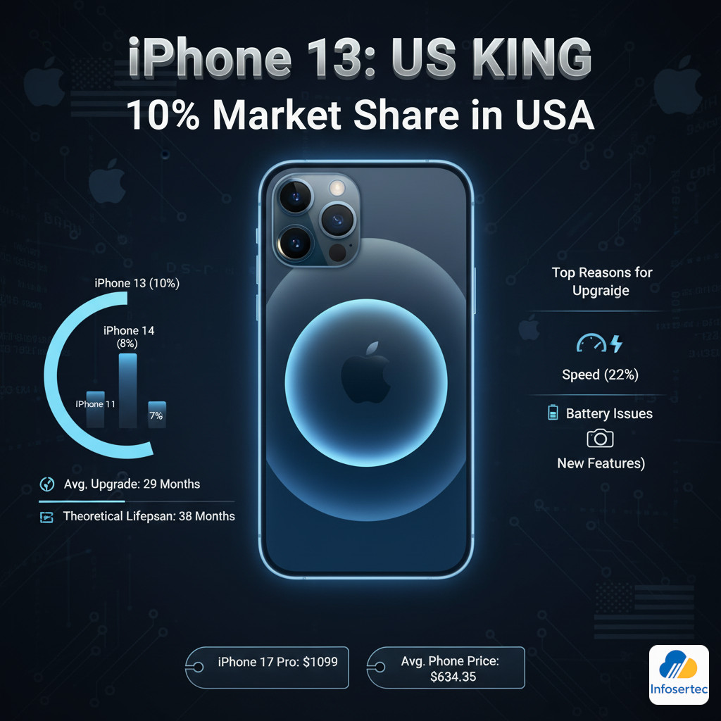 El estudio realizado por Reviews.org reveló que el iPhone 13, lanzado en 2021, es el dispositivo de Apple más común en manos de los consumidores estadounidenses, superando al iPhone 14 (8% de cuota) y al iPhone 11 (7%). Este dominio se convierte en una métrica esencial para la estrategia comercial de Apple, justificando por qué los planos promocionales de canje para la serie iPhone 17 se centran en este modelo y los posteriores.