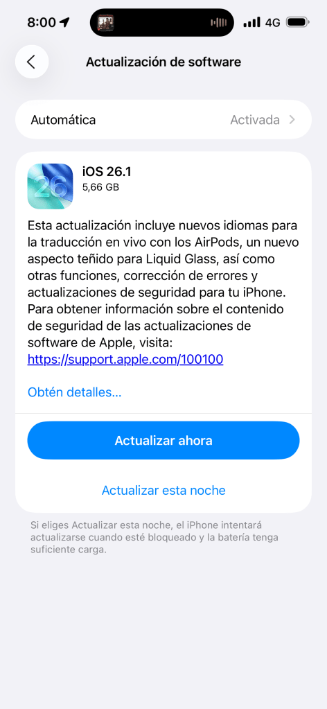La actualización iOS 26.1 está disponible para el iPhone 11 y modelos posteriores, además del iPhone SE de segunda generación. Se recomienda su instalación por las correcciones de errores que incluye.
