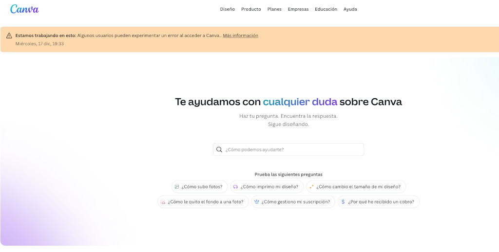 La falla parece ser de alcance global, afectando especialmente a usuarios en América Latina, Estados Unidos y Europa. A través de su página oficial de estado (Canva Status), la compañía ha reconocido que están experimentando un «incidente técnico» y que su equipo de ingeniería ya está trabajando en una solución urgente.