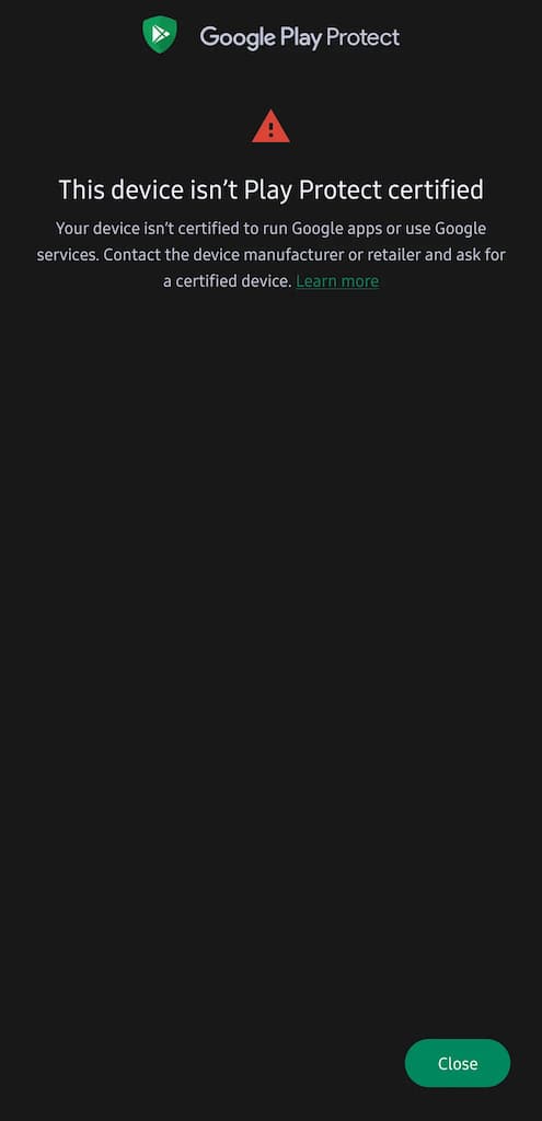 - Mensajes que indican: «Este dispositivo no está certificado para ejecutar apps de Google».