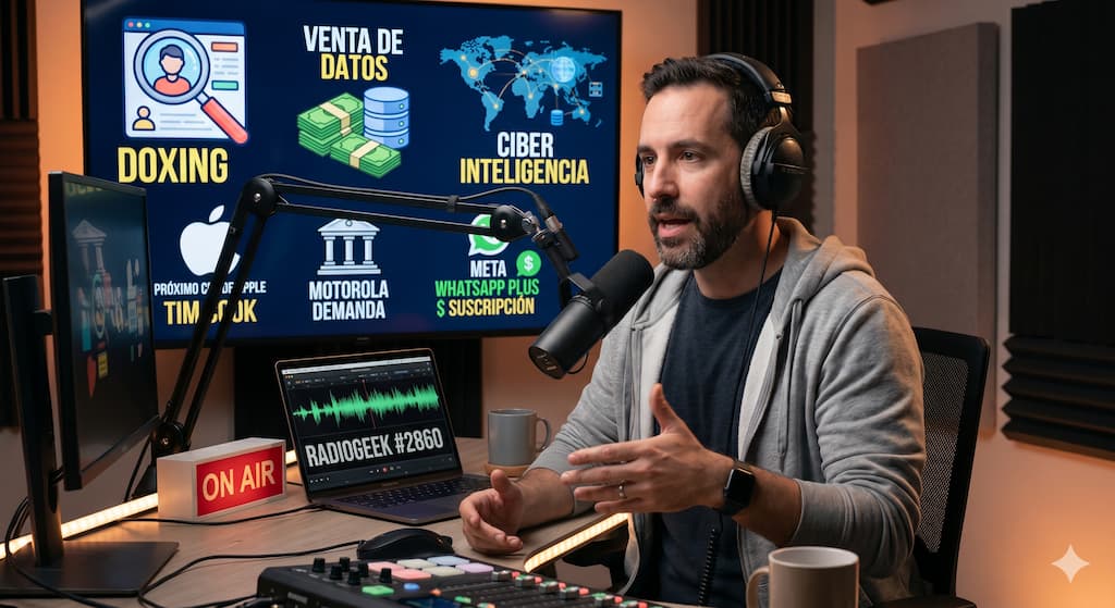 El programa 2860 de Radiogeek, les habló de varios temas importantes. Hoy amplio el video que subí el fin de semana con relación al doxing, donde ademas toque el tema de la venta de datos, la ciber inteligencia de los mismos y mucho más. Ademas la noticia sobre el próximo CEO de Apple, y la desvinculación de Tim Cook; seguido de Motorola y la demanda legal a comunicadores y por ultimo el tema meta y la suscripción de WhatsApp Plus.