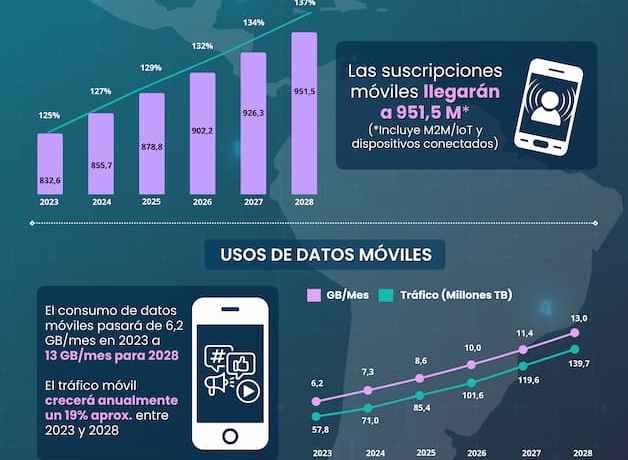 #Informe – El Consumo de datos móviles se duplicará hasta 13 GB/mes por usuario en América Latina y el Caribe para 2028