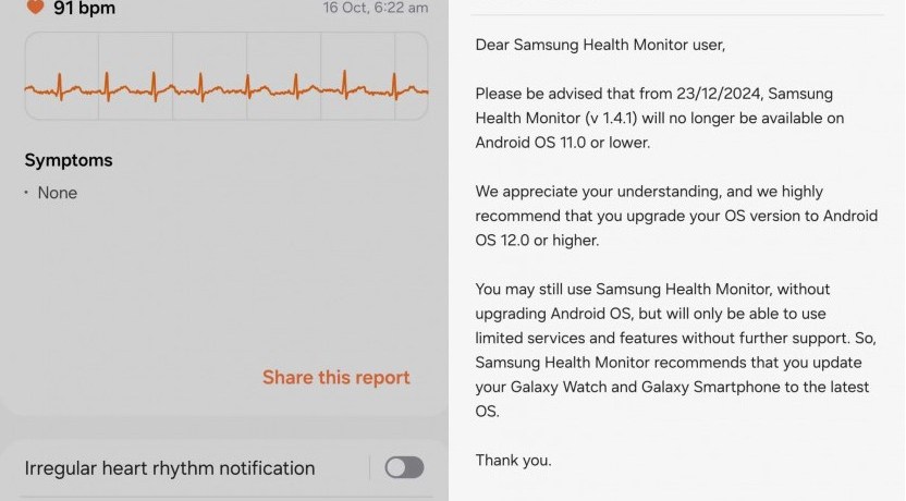 #Samsung Health Monitor deja de ofrecer soporte para Android 11 y anteriores