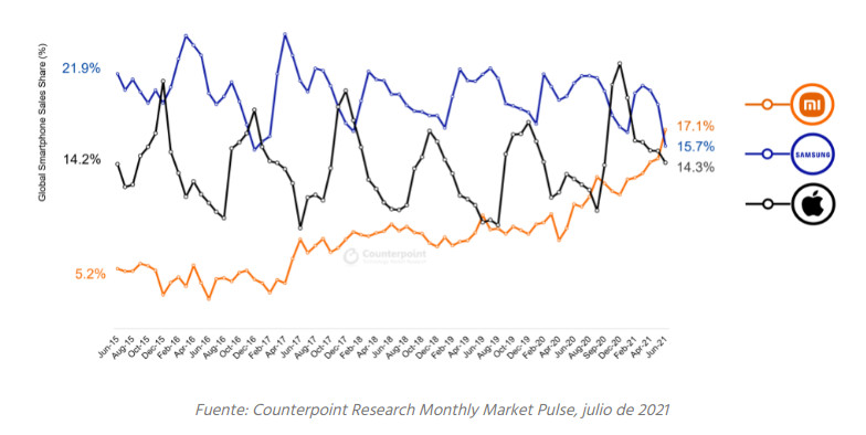 Xiaomi ocupa el segundo lugar en el mercado mundial de teléfonos inteligentes