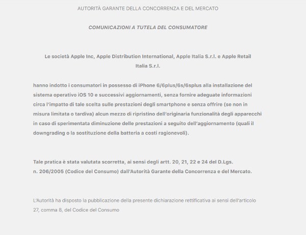 Apple Italia fue obligado a publicar que ralentizo los iPhones