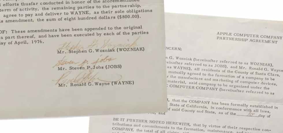 El Contrato Original de Fundación de Apple Saldrá a Subasta