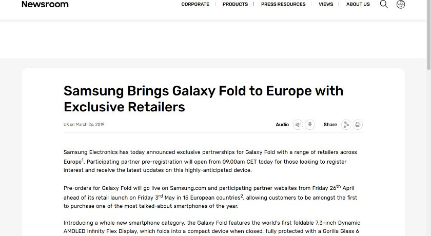NOTICIAS PORTADA SamsungSamsung borra la entrada que confirma el desembarco del Galaxy Fold en Europa