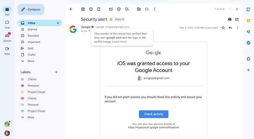 #Gmail anuncio su propia marca de verificación azul