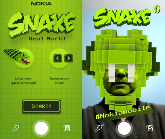 Snake a través de la nueva plataforma de RA de Facebook Camera